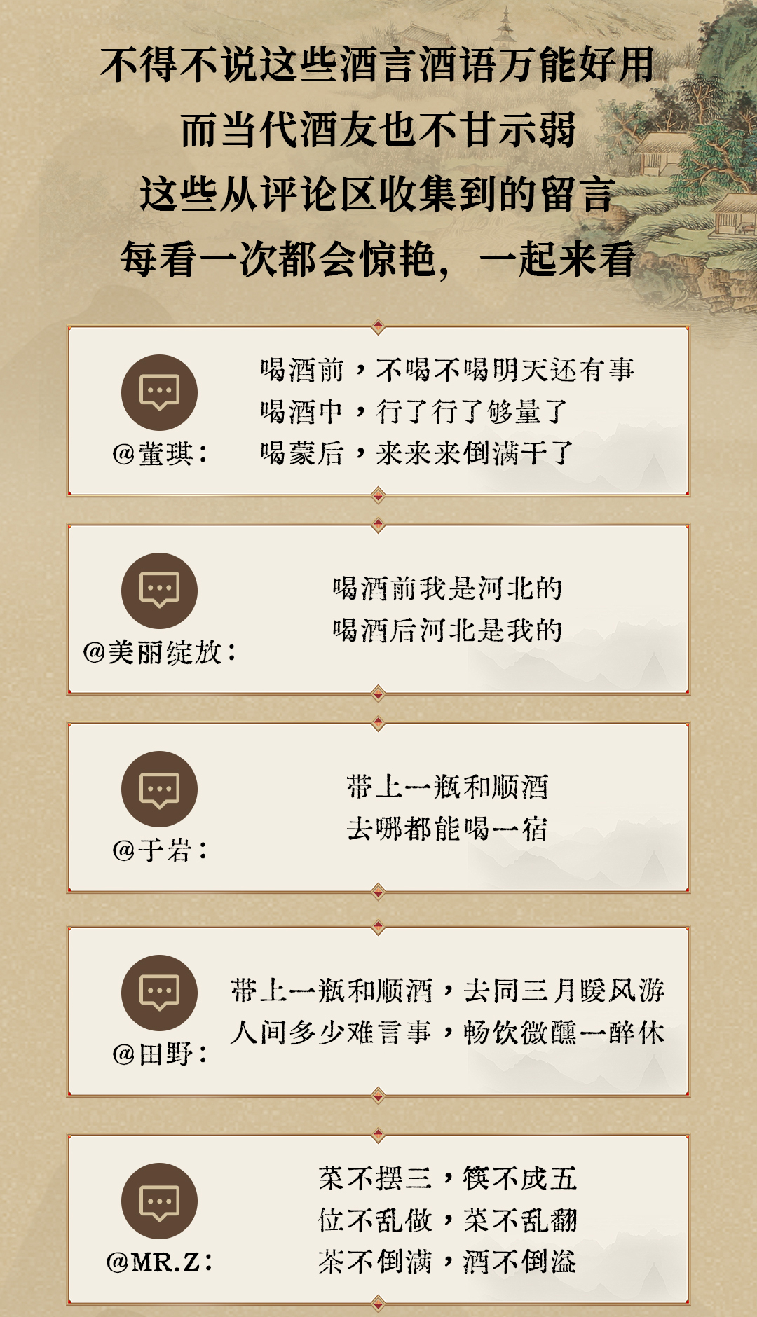行業(yè)資訊 當(dāng)前位置:首頁(yè) > 行業(yè)資訊 > 【互動(dòng)送酒】酒場(chǎng)上的酒言酒語(yǔ)!記下來(lái),下次喝酒用得上