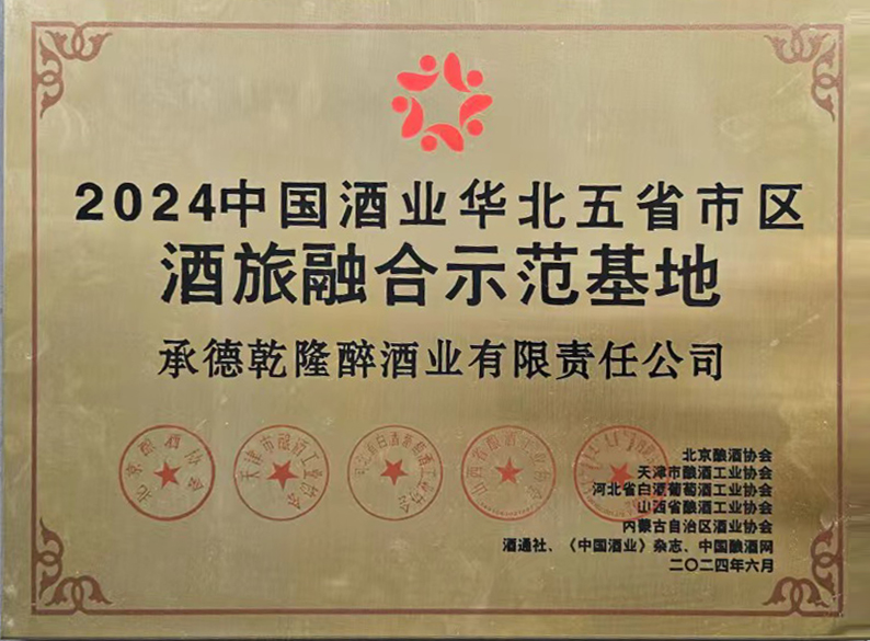 承德乾隆醉酒業(yè)(板城酒業(yè))在本次活動(dòng)中榮獲“2024中國(guó)酒業(yè)華北五省市區(qū)·酒旅融合示范基地”的榮譽(yù)稱號(hào)。此項(xiàng)榮譽(yù)的獲得,是白酒行業(yè)與媒體對(duì)板城酒業(yè)酒旅融合新業(yè)態(tài)發(fā)展的肯定與鼓勵(lì)。