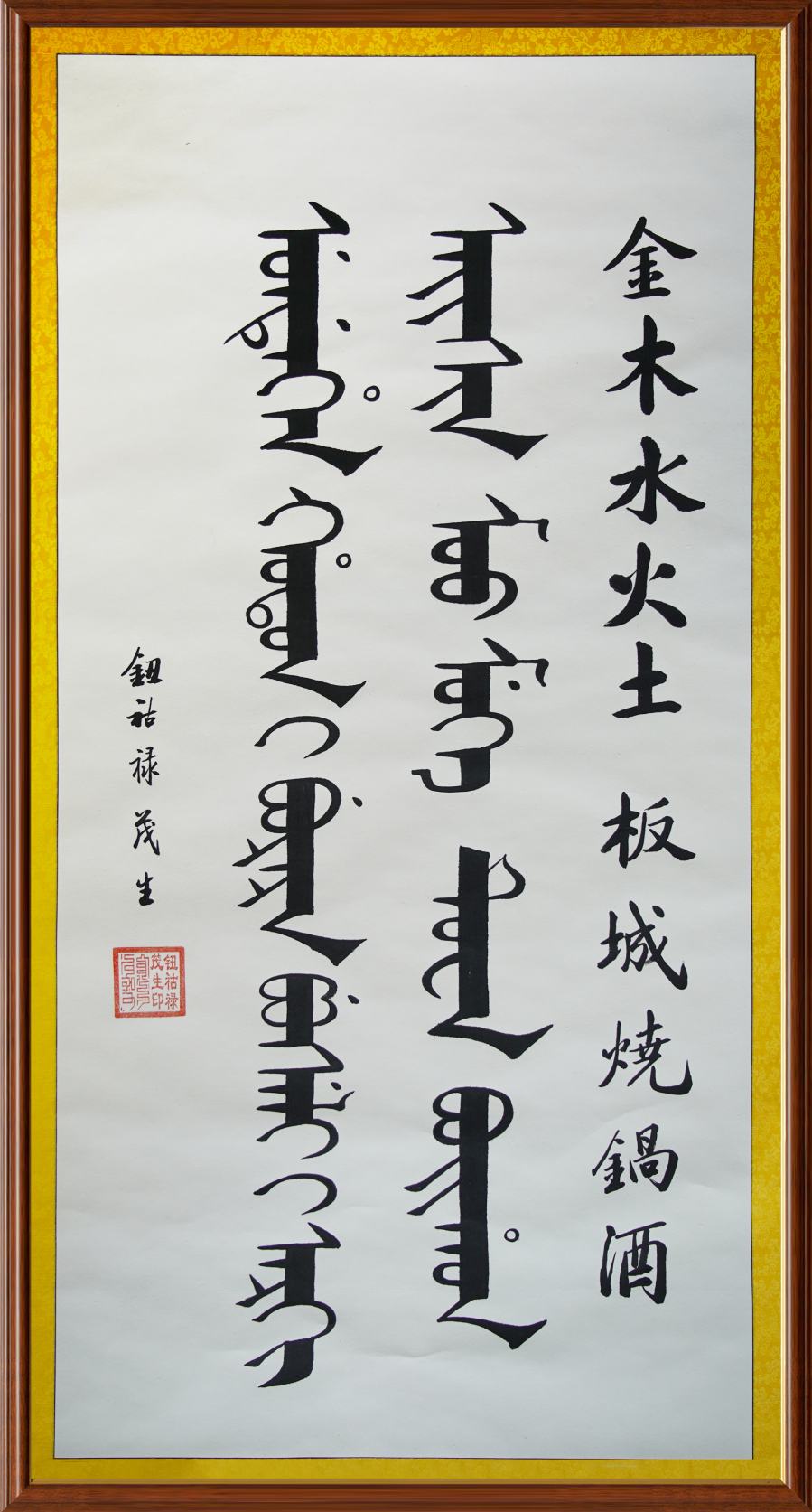 茂生老師的作品以滿漢雙語(yǔ)書寫,展現(xiàn)了中華民族多元文化的獨(dú)特魅力。不僅體現(xiàn)了中華民族多元文化的包容性和融合性,也展示了茂生老師對(duì)傳統(tǒng)文化的熱愛和傳承。