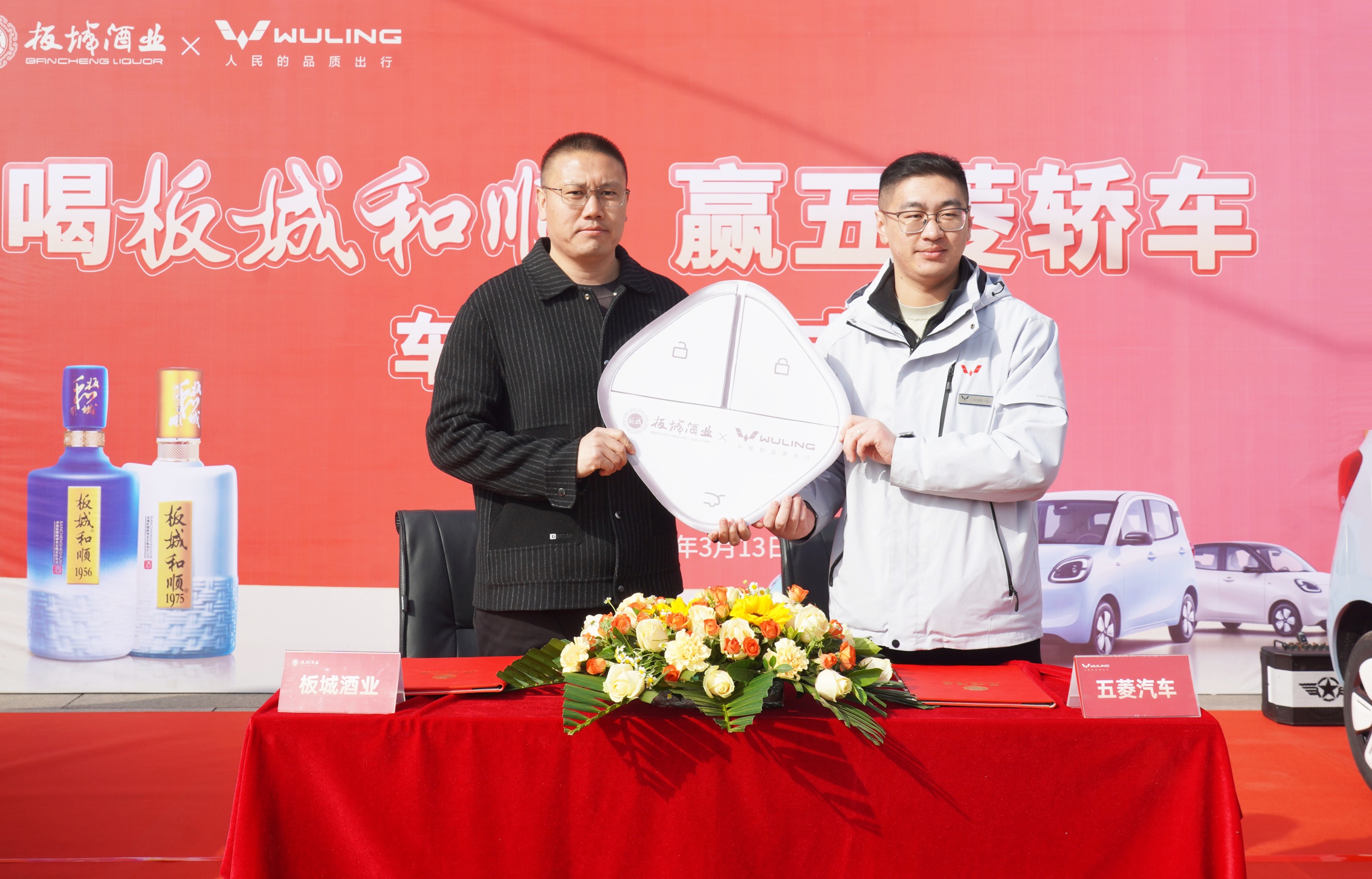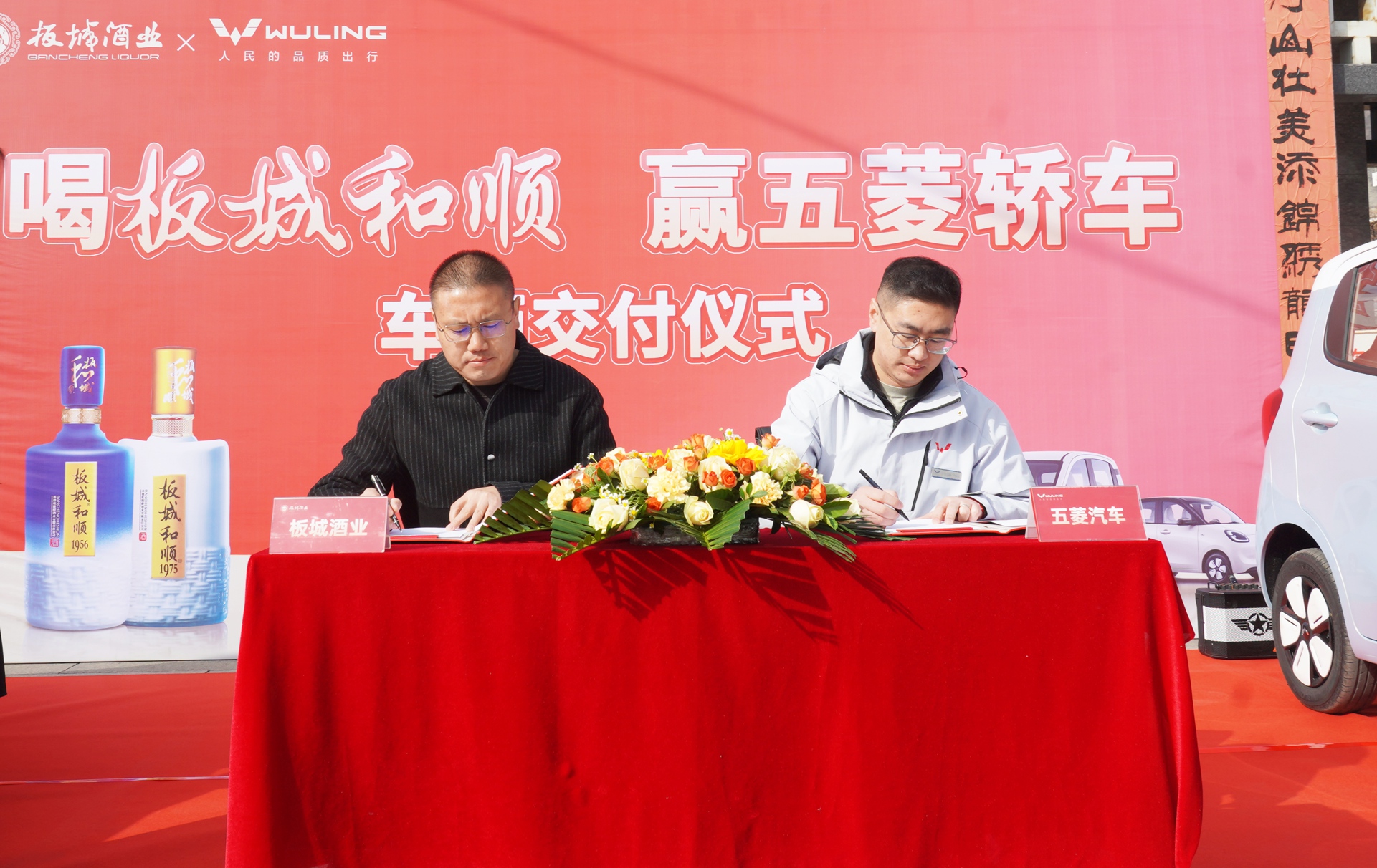 在活動(dòng)現(xiàn)場(chǎng),板城酒業(yè)銷(xiāo)售市場(chǎng)總監(jiān)王曉波與五菱汽車(chē)承德駿盛4S店市場(chǎng)總監(jiān)呂呈濤共同簽署了《五菱宏光MINIEV汽車(chē)交付協(xié)議》。