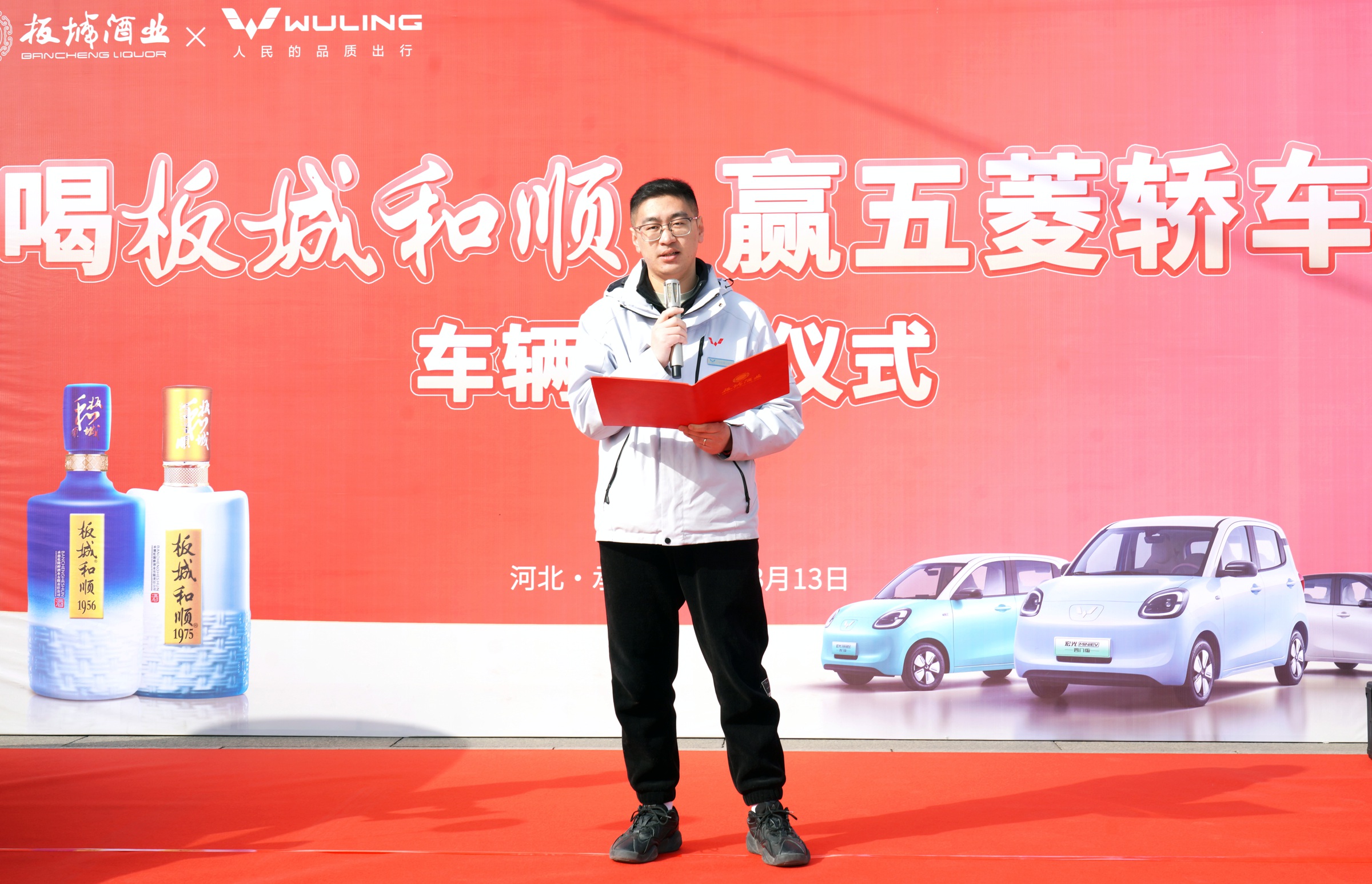 板城酒業(yè)銷(xiāo)售市場(chǎng)總監(jiān)王曉波在致辭中表示,本次板城酒業(yè)針對(duì)承德地區(qū)投入百萬(wàn)級(jí)資源,精心策劃并發(fā)起“喝板城和順,贏五菱轎車(chē)”活動(dòng),旨在以真誠(chéng)回饋家鄉(xiāng)消費(fèi)者的厚愛(ài)與支持。王曉波總監(jiān)提到:“承德的水土養(yǎng)育了板城酒業(yè),是家鄉(xiāng)的消費(fèi)者成就了百年品牌!這不僅是一次促銷(xiāo)活動(dòng),更是一場(chǎng)‘雙向奔赴’——消費(fèi)者選擇一瓶板城和順,我們回饋一份幸運(yùn)大禮;在此,我們誠(chéng)摯邀請(qǐng)承德地區(qū)消費(fèi)者參與“喝板城和順,贏五菱轎車(chē)”活動(dòng),所有大獎(jiǎng)均已準(zhǔn)備就緒,期待與您共享這份幸運(yùn)與喜悅!”