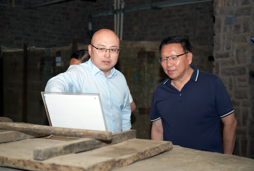 沈重武一行首先參觀了板城燒鍋酒博物館,通過珍貴的歷史文物、詳實的圖文資料及沉浸式場景展示,深入了解板城燒鍋酒跨越三百年的發(fā)展歷程。聆聽了百年老店慶元亨與老五甑工藝傳承發(fā)展的歷史文化故事,展現(xiàn)著板城酒業(yè)深厚的文化底蘊。