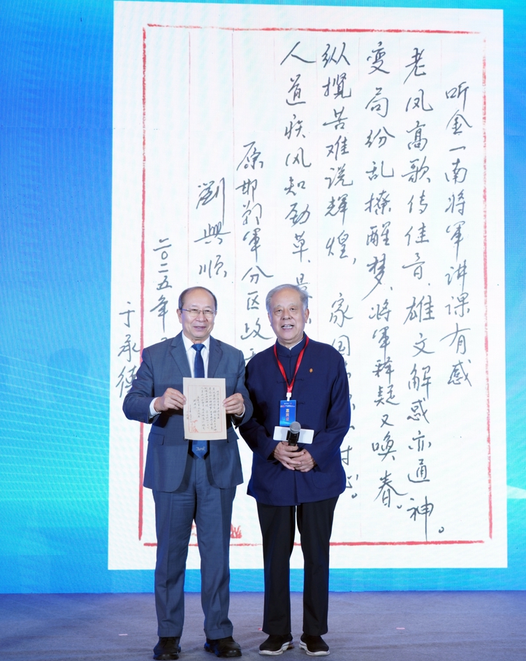 金一南教授演講結束后,現(xiàn)場觀眾紛紛表示,這場思想盛宴讓人受益匪淺。原邯鄲市委常委、軍分區(qū)政委劉興順深受打動,即興賦詩一首相贈,將會場氣氛推向高潮。