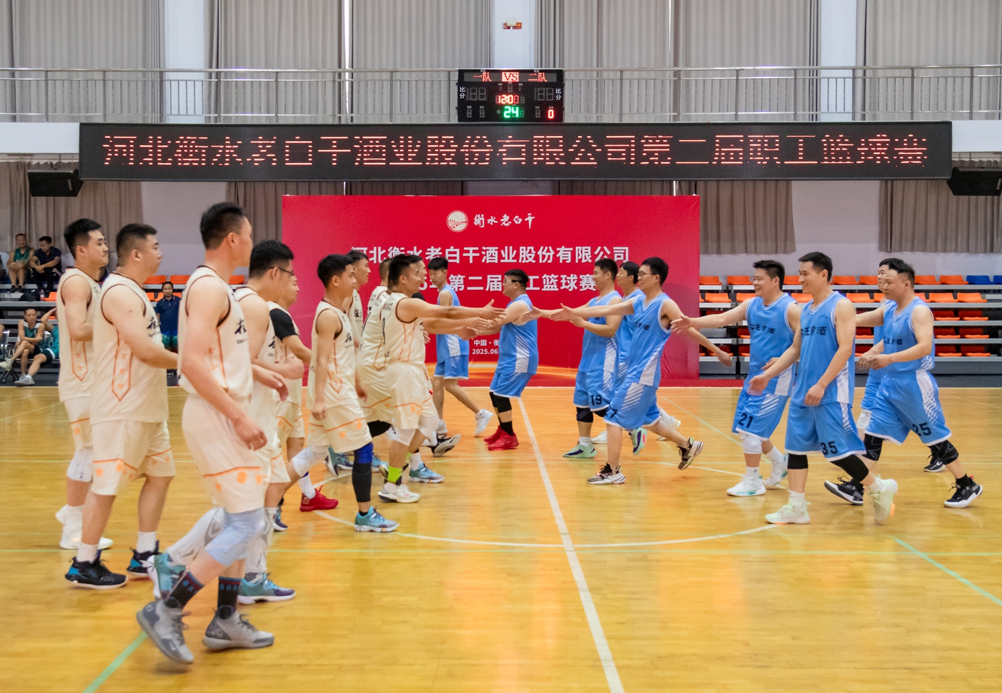 6月25-26日,河北衡水老白干酒業(yè)股份有限公司第二屆職工籃球賽在衡水圓滿落幕。來自衡水老白干酒業(yè)及其旗下板城酒業(yè)、孔府家酒業(yè)、武陵酒業(yè)、文王酒業(yè)等六支精英代表隊(duì)齊聚一堂,共同演繹了一場(chǎng)精彩絕倫的體育盛宴。