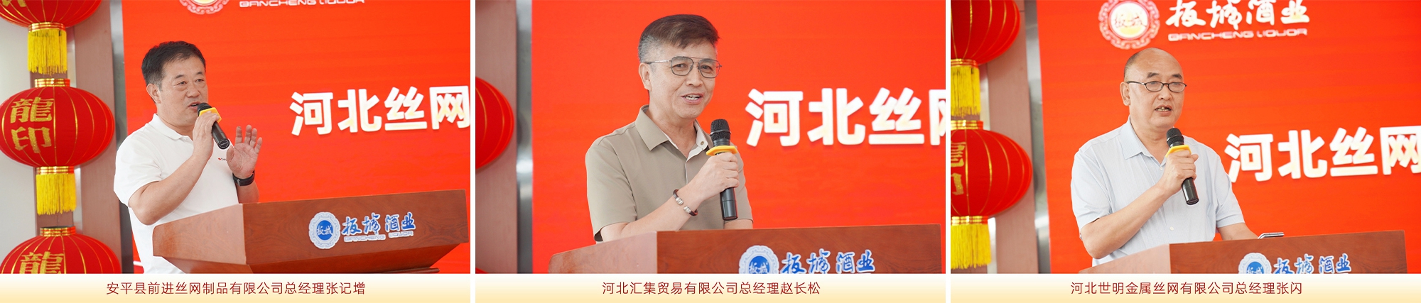 河北省絲網(wǎng)產(chǎn)業(yè)協(xié)會會長梁畔逢在致辭中講到:“今天的活動,不僅是河北省絲網(wǎng)產(chǎn)業(yè)協(xié)會與板城酒業(yè)的戰(zhàn)略簽約儀式,更是一次跨界融合、創(chuàng)新共享的行業(yè)盛會。我們期待通過這次合作與交流,以文化共鳴為紐帶,以資源互補為基石,共同探索‘河北制造+河北品牌’的協(xié)同發(fā)展新模式——讓絲網(wǎng)產(chǎn)業(yè)的創(chuàng)新技術為酒業(yè)包裝升級注入新動力,讓板城酒業(yè)的品牌勢能為絲網(wǎng)企業(yè)產(chǎn)業(yè)鏈賦能增值。此次跨界聯(lián)動,將會為冀商融合發(fā)展開辟新路徑,為產(chǎn)業(yè)跨界共贏注入新動能,共同助推河北產(chǎn)業(yè)邁上高質(zhì)量發(fā)展快車道。”