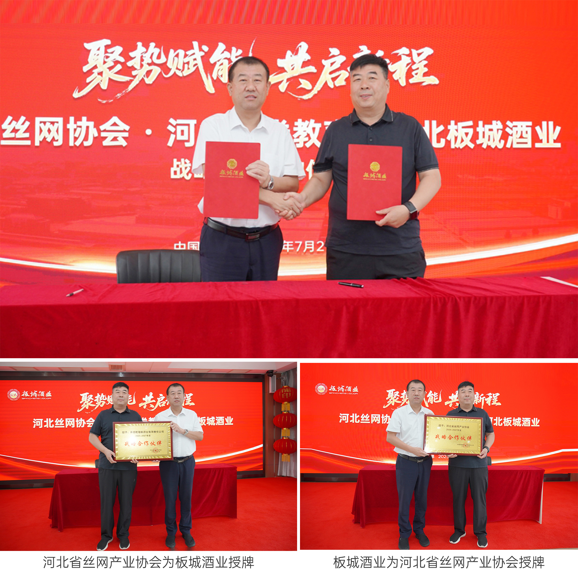 河北省絲網(wǎng)產(chǎn)業(yè)協(xié)會與板城酒業(yè)公司簽署戰(zhàn)略合作。
