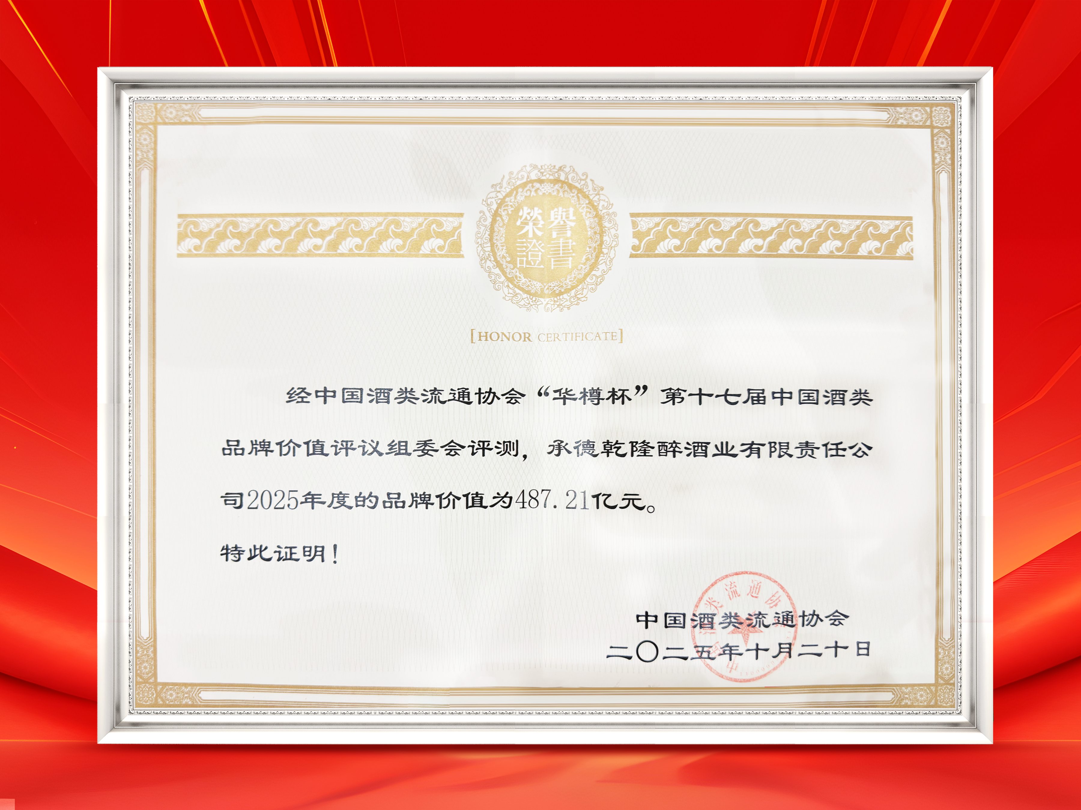 榮譽(yù)加冕,再創(chuàng)輝煌。在今日揭曉的第十七屆“華樽杯”中國酒類品牌價(jià)值評議中,承德乾隆醉酒業(yè)有限責(zé)任公司(板城酒業(yè))表現(xiàn)搶眼,品牌價(jià)值高達(dá)487.21億元,較去年實(shí)現(xiàn)顯著增長,位列中國白酒行業(yè)第25位,較去年提升五位。這一成績不僅彰顯了企業(yè)強(qiáng)大的綜合實(shí)力,更體現(xiàn)了行業(yè)專家與市場對板城品牌的高度認(rèn)可。